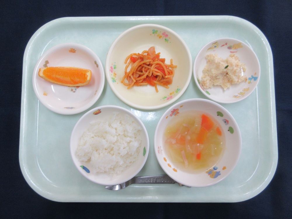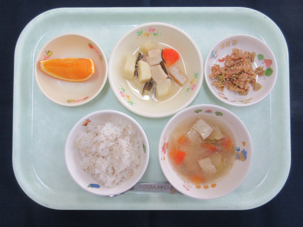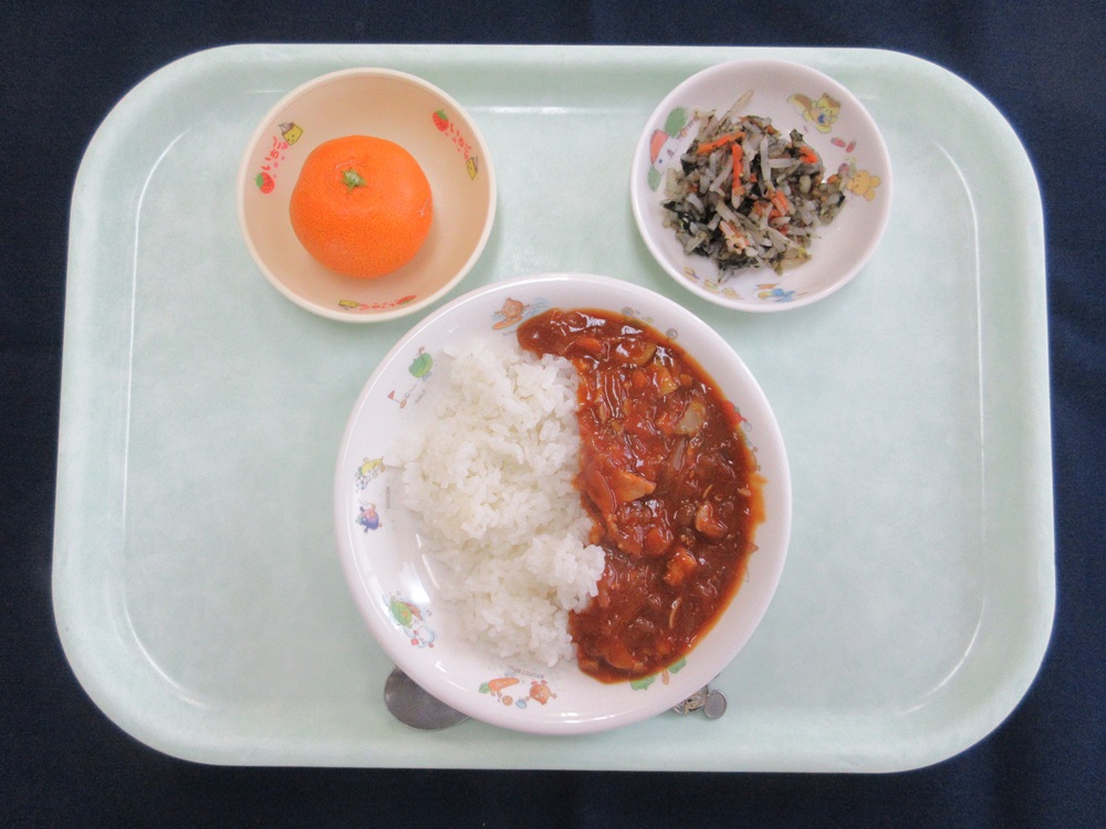 2月 献立 2026/02/26 ハヤシカレー もやのりず みかん さばの竜田揚げ 小松菜の磯辺和え 白菜の味噌汁 輪切りみかん 八宝菜 春雨サラダ かきたま汁 オレンジ ケッチャプスパゲッティ ポテトボロネーゼ キャベツスープ オレンジ 高野豆腐の含め煮 キャベツの胡麻和え 田舎汁 オレンジ